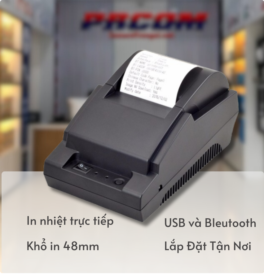 Bluetooth: Đặc biệt tiện lợi cho các điểm bán hàng cần kết nối không dây, hoặc in bill order từ xa mà không phụ thuộc vào dây cáp.