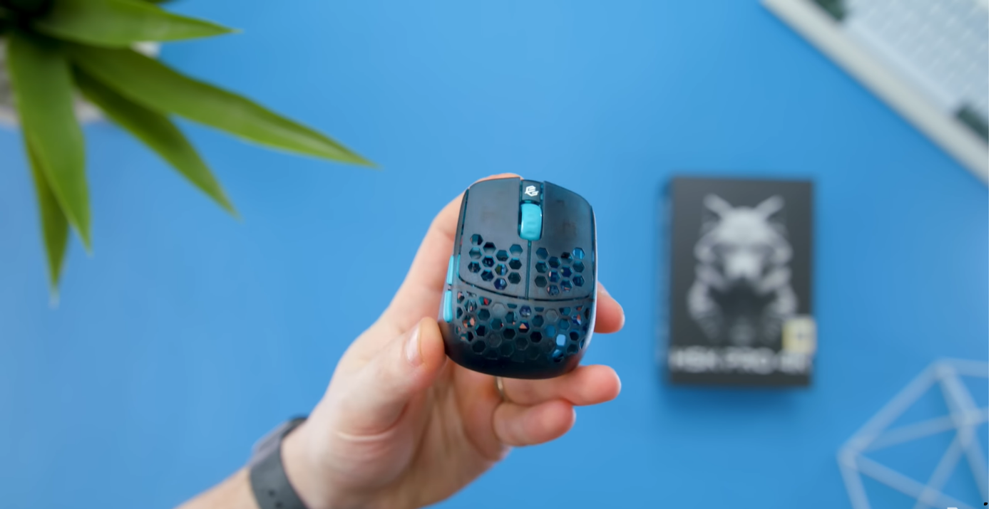 Chuột HSK Pro 4K: Với lớp vỏ trong suốt màu xanh ngọc độc đáo.